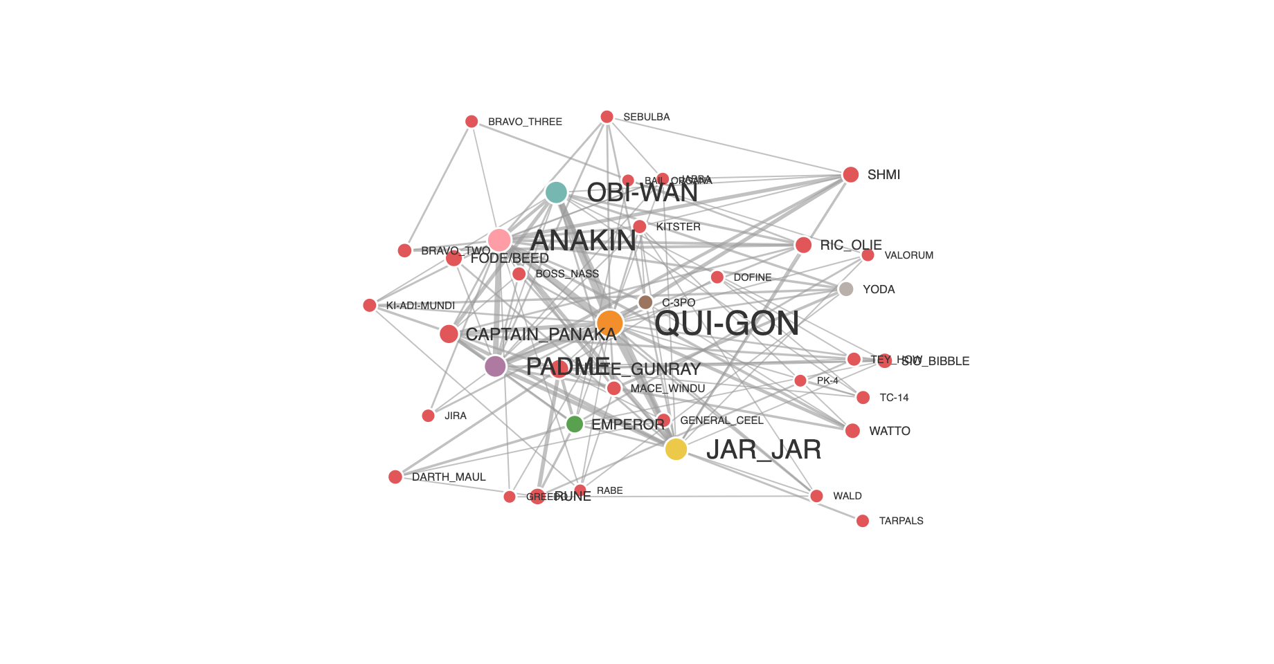 Overall, we aimed to help understand the “social network” of the Star Wars franchise and answer questions related to character interactions and importance.